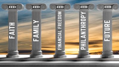 To allow our FAITH in God to be the foundation of our FAMILY. By living according to biblical principles of stewardship, we can experience FINANCIAL FREEDOM so that we may be free to engage in a lifestyle of PHILANTHROPY that will create hand-ups that positively affect the FUTURE of others.